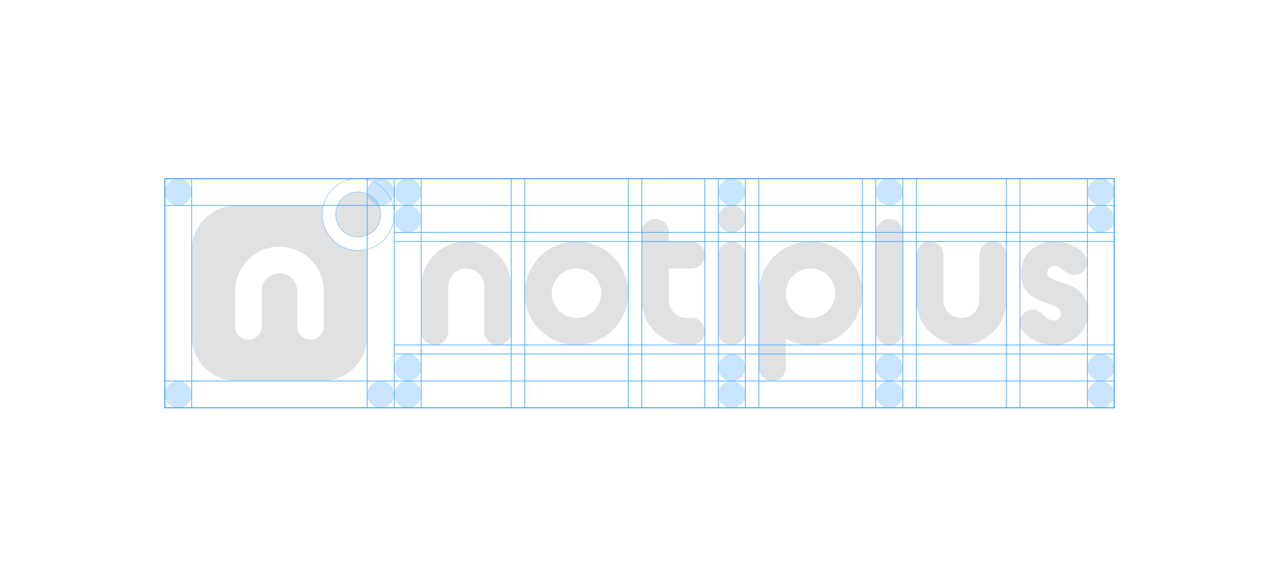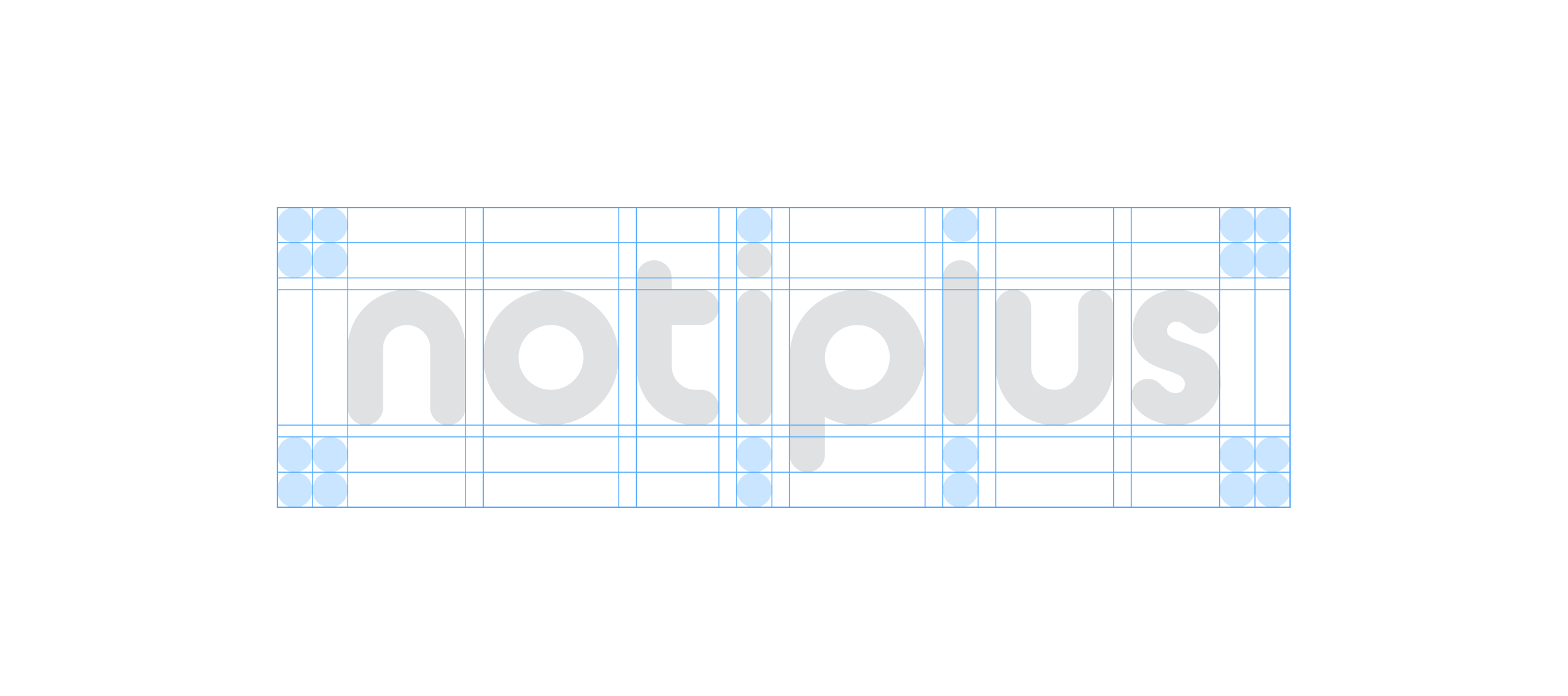 로고의 시각적 독립성을 위해 규정된 여백과 최소 크기를 지켜주세요. notiplus 중 i의 dot(・)을 기준으로 여백과 비율을 정의하였으며, 최소 크기는 높이(H) 기준입니다. 로고 사용 시 다른 매체나 그래픽 요소가 여백 안으로 침범하지 않도록 주의해야 합니다.